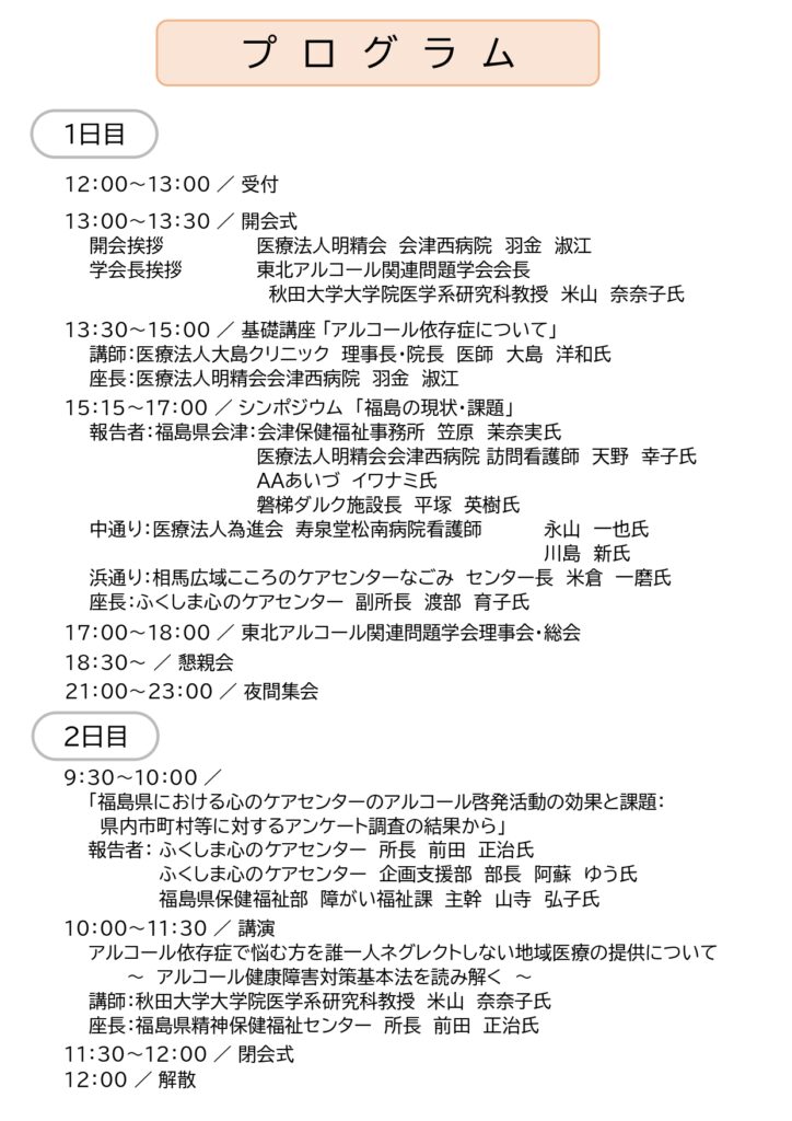 東北アルコール関連問題学会